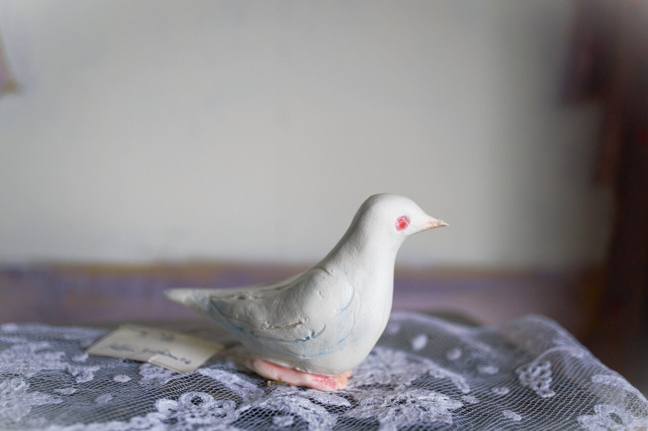 size 高さ約4.5㎝ 小さな白い鳩です。 手のひらに乗せるとかわいいサイズ。 葉っぱをくわえてます。