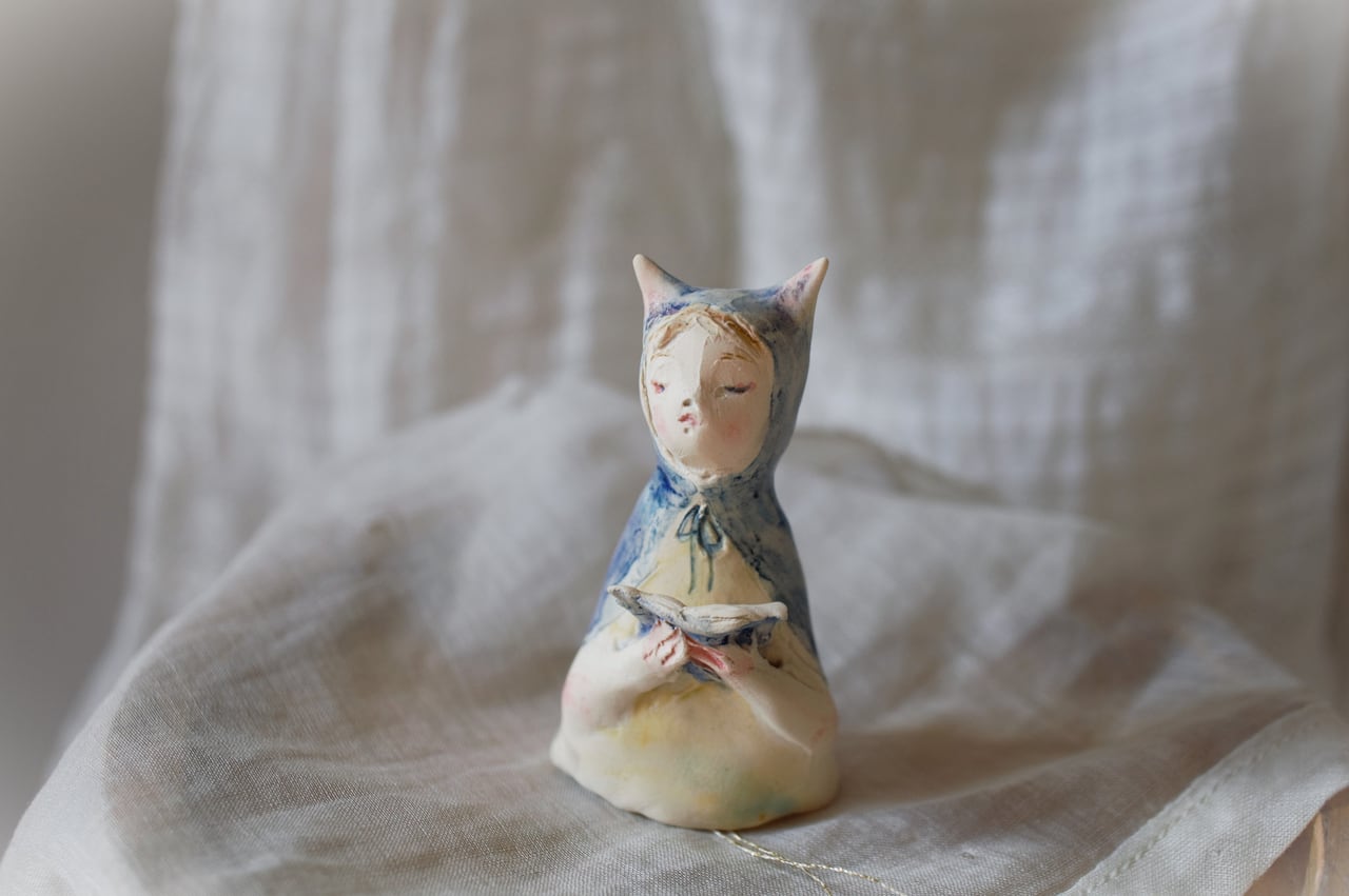 本を読んでいる猫の人。