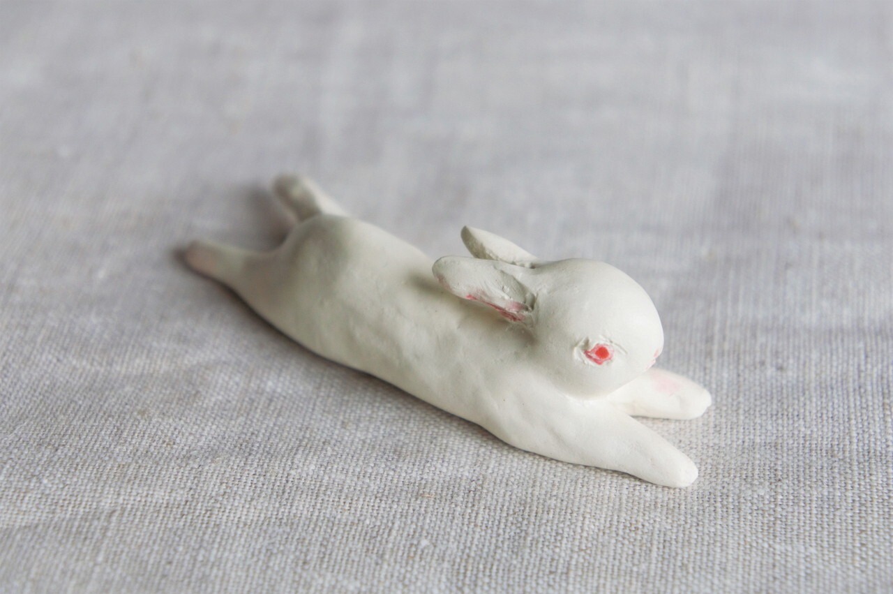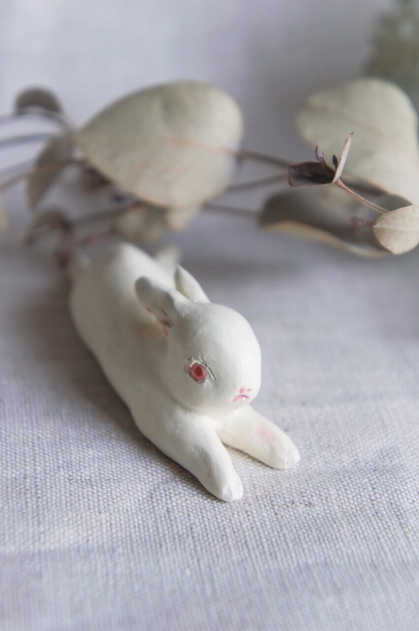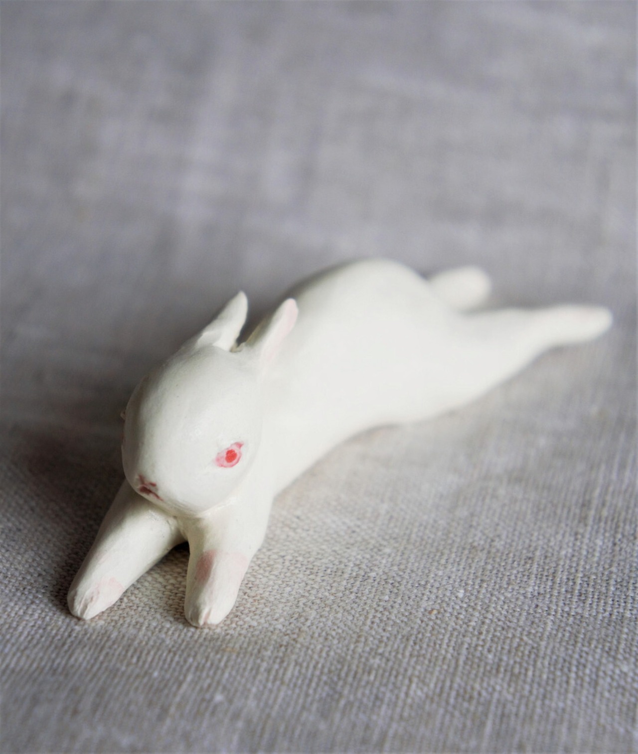 小さい立ちポーズの兎と並んでいる写真もありますが、寝そべっている方のみの価格です。