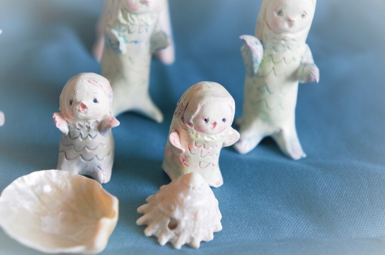 あかちゃんのアマビエさんは「まま~、抱っこ~」それとも、「どこ~?」と言っているのでしょうか