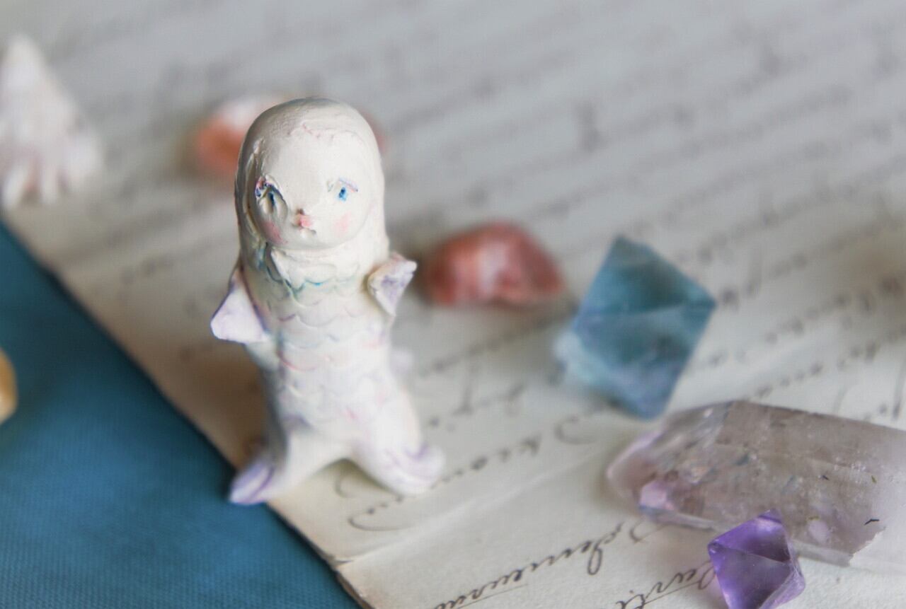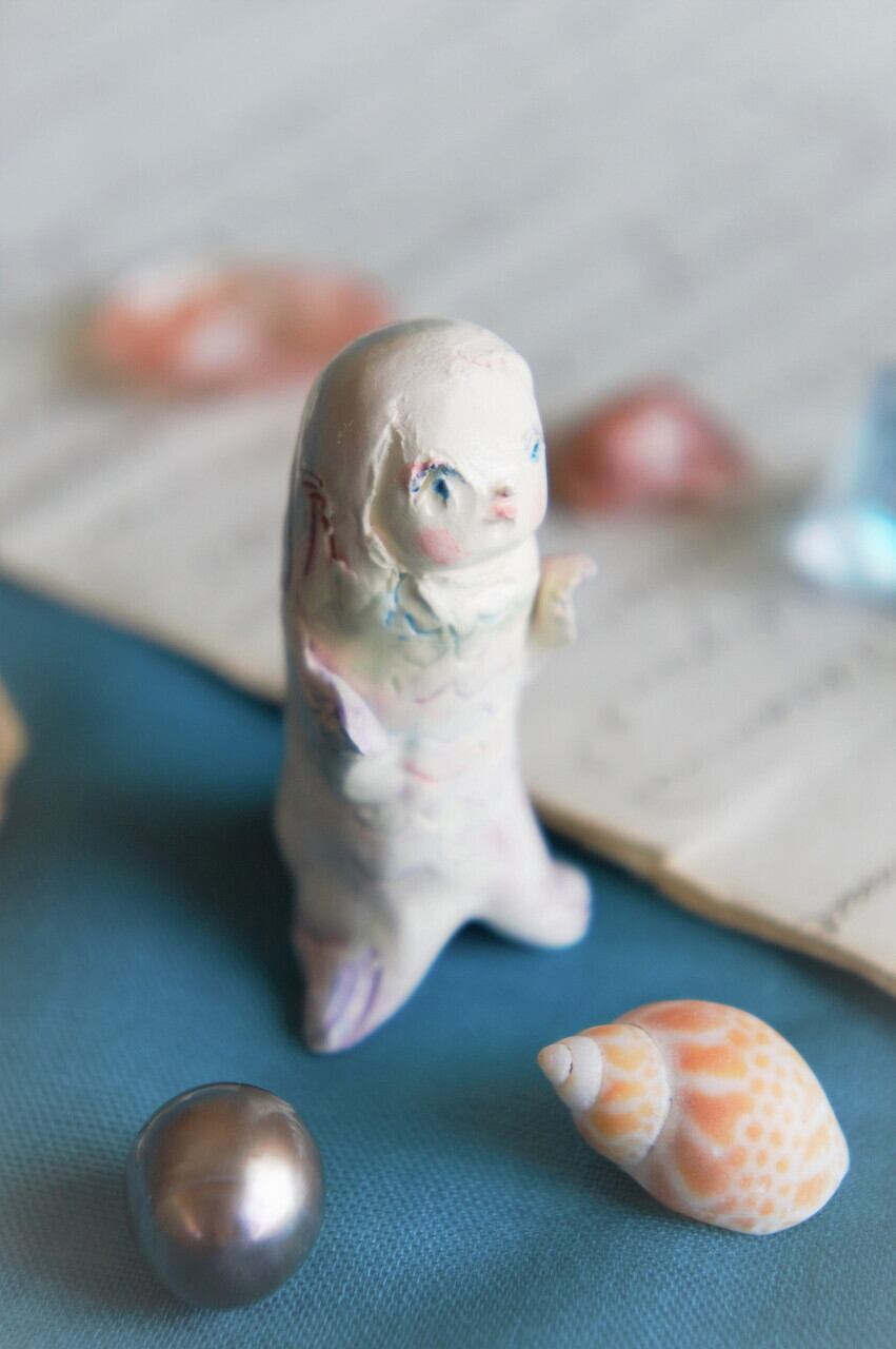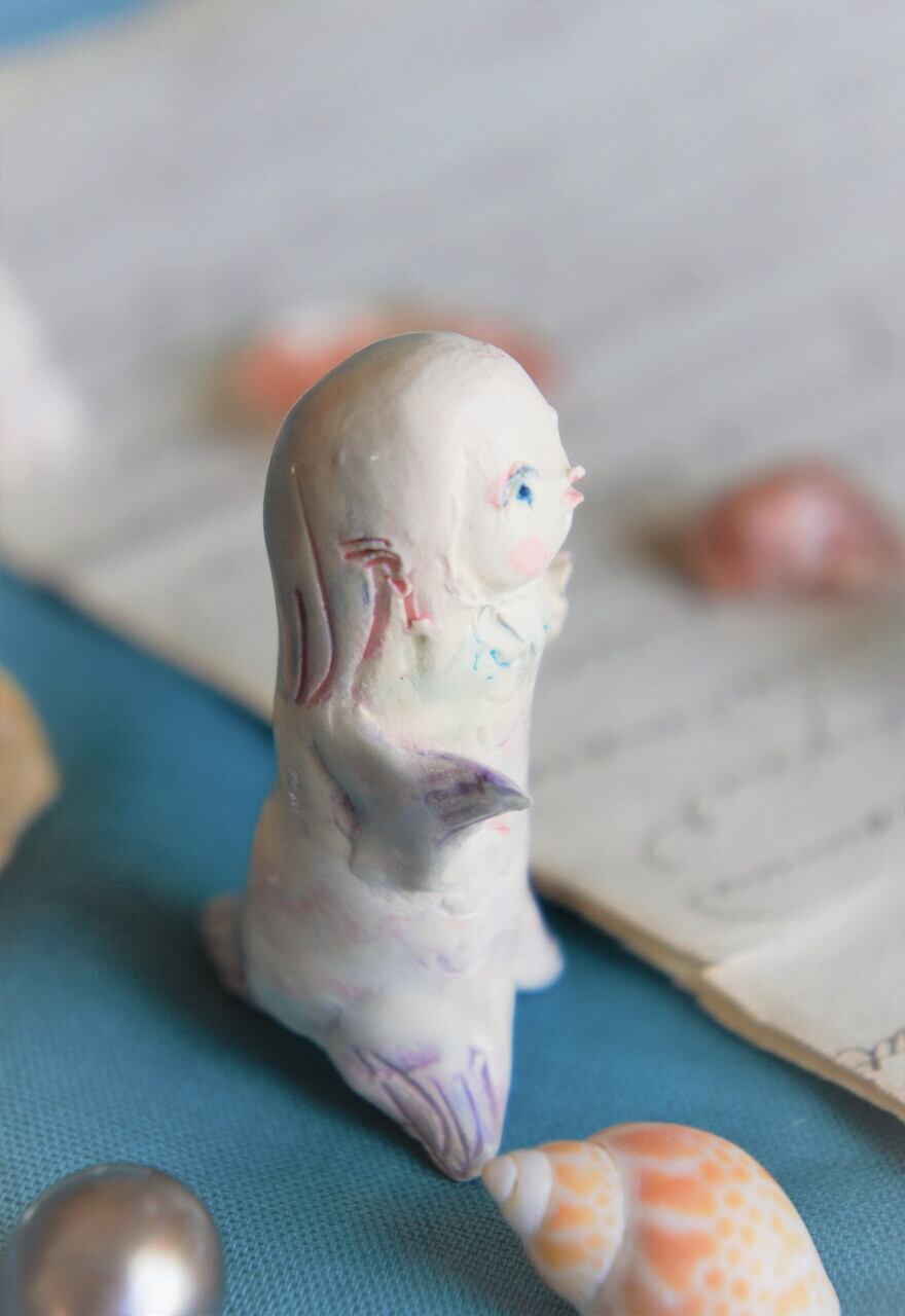 「疫病がはやったらわたしの絵を描いて人々に見せなさい」と予言したとされるアマビエ。こちらは若手のお姉さんくらいの年頃のアマビエだと思います。