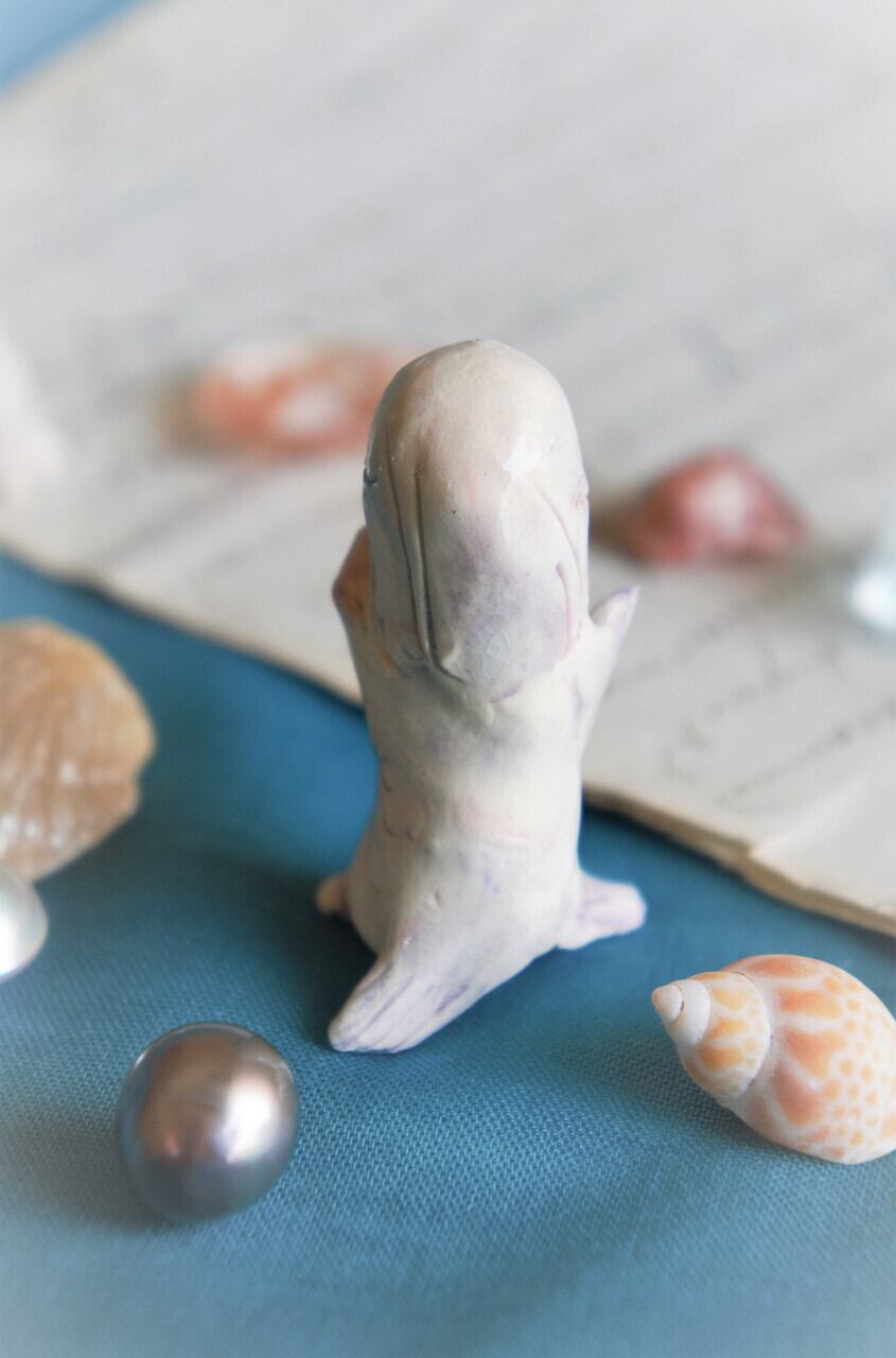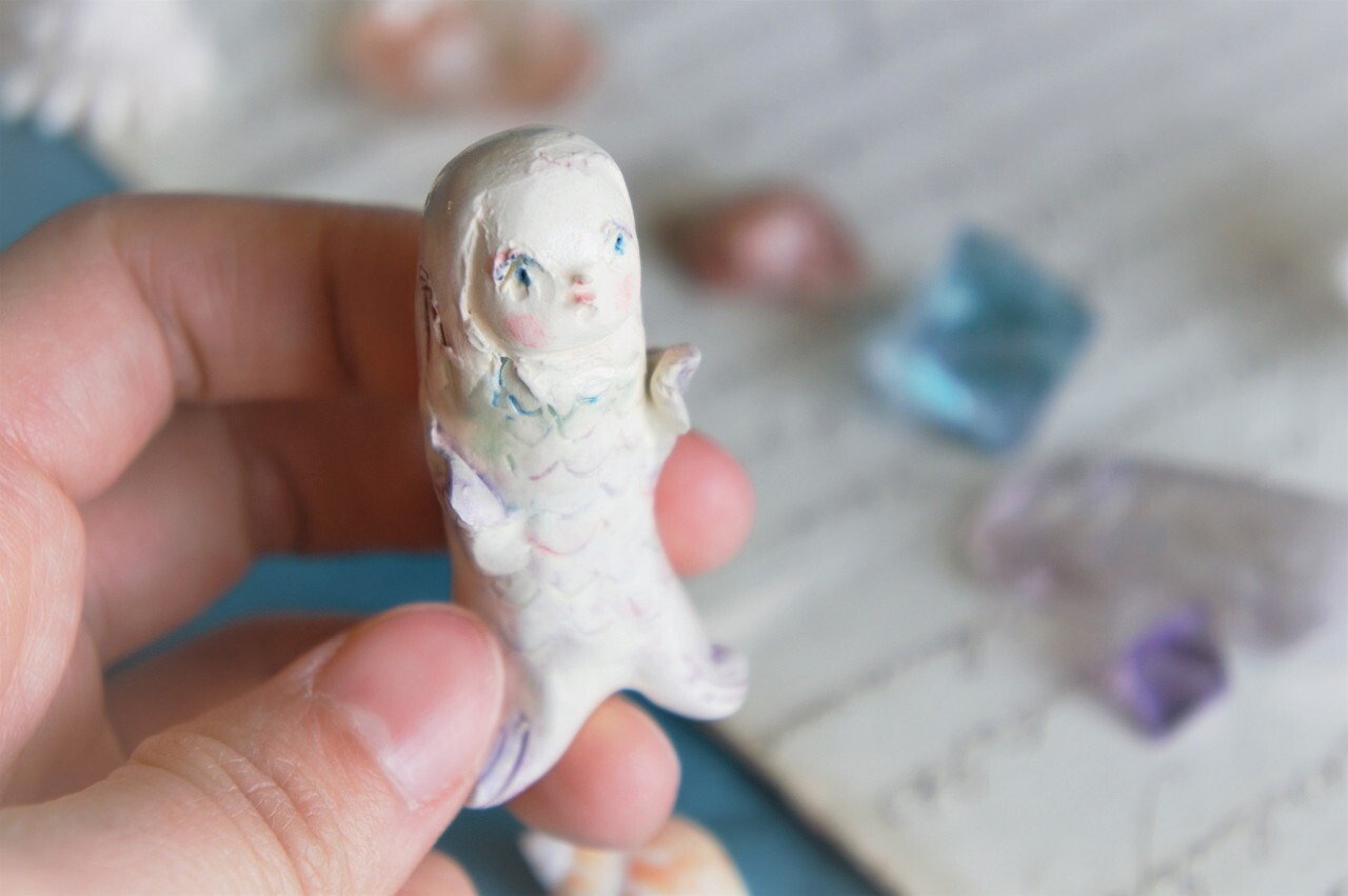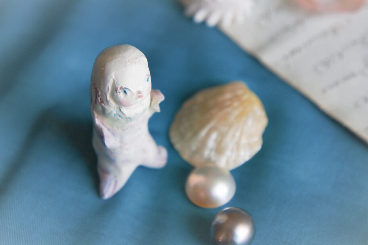 「疫病がはやったらわたしの絵を描いて人々に見せなさい」と予言したとされるアマビエ。こちらは若手のお姉さんくらいの年頃のアマビエだと思います。
