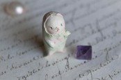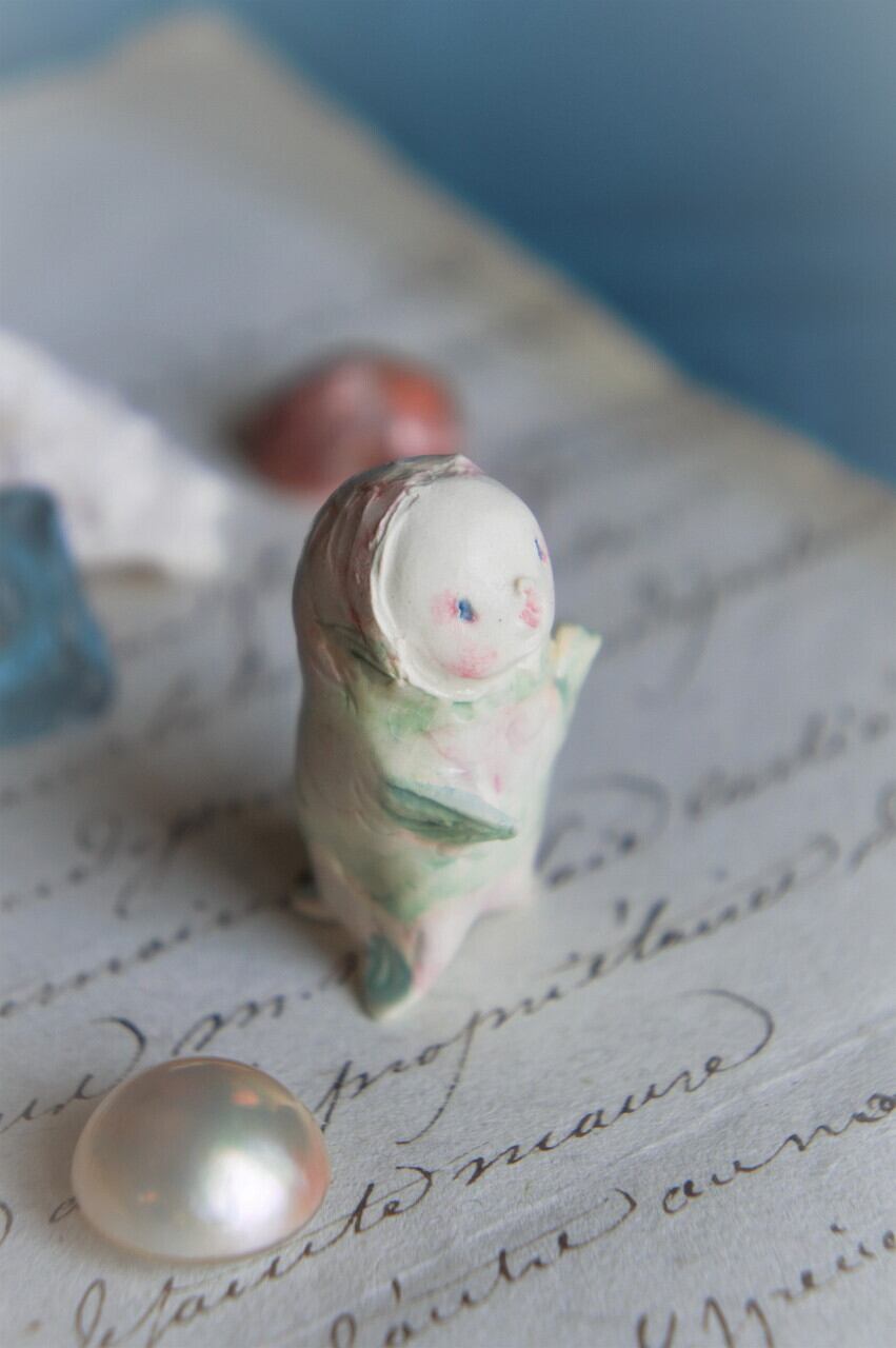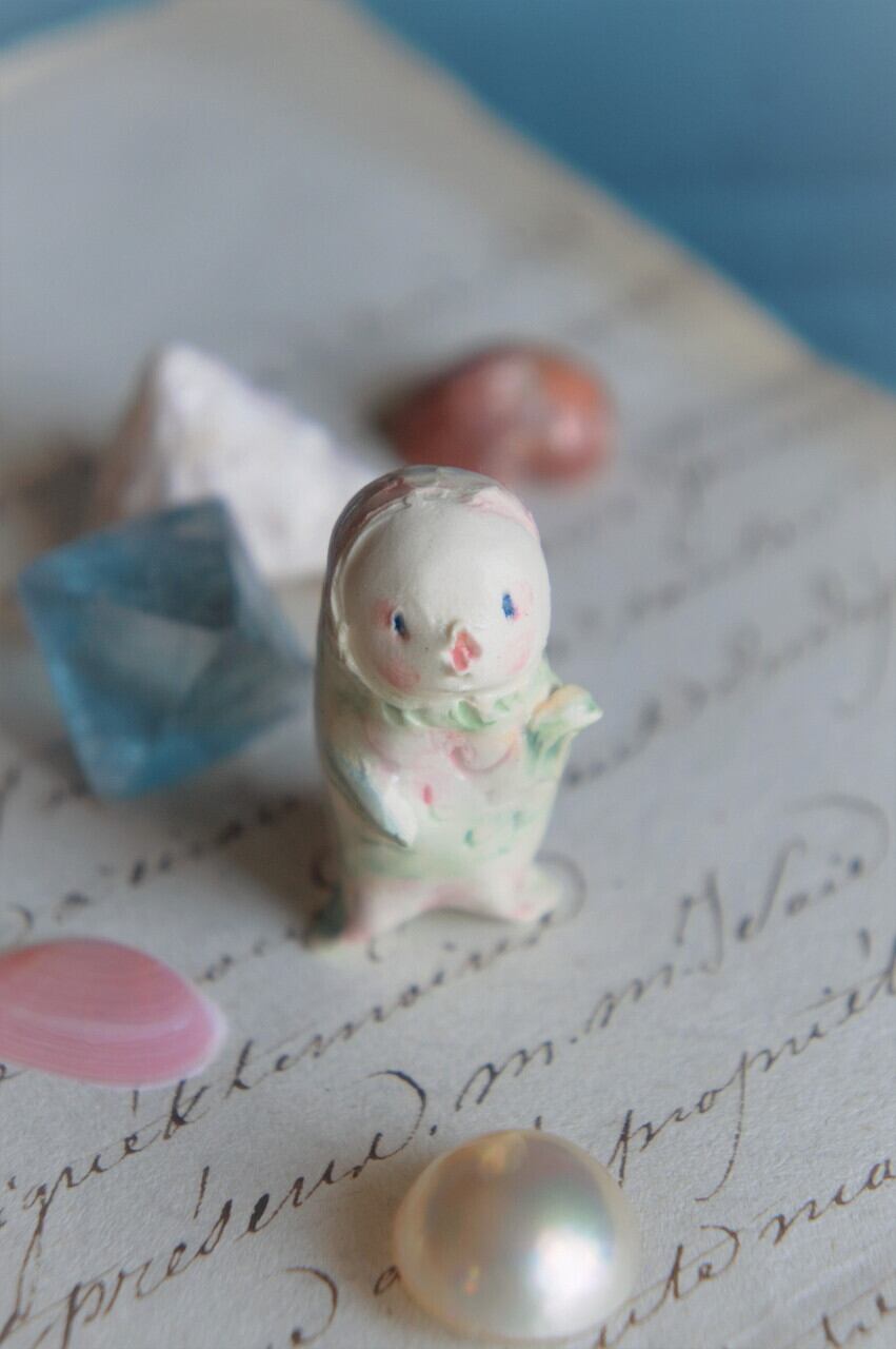 F グリーンとピンク混じりの子。無邪気そうにも見えますし、光の当たり具合や向きに寄っては不安げな顔にも見えます。「ねぇねぇねぇ、」「あのね、ぼくね…」とどうやらおしゃべりなタイプのようです。