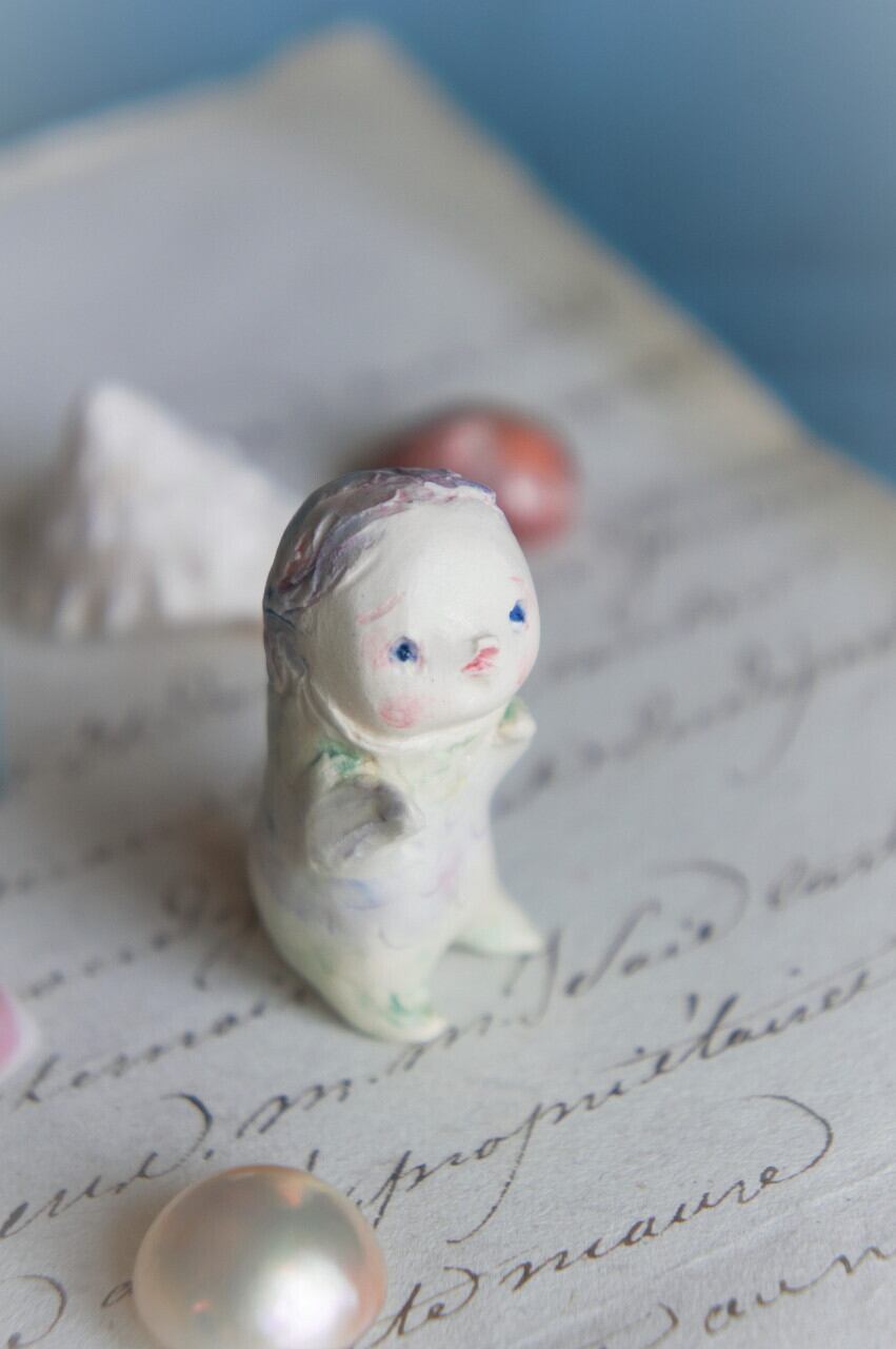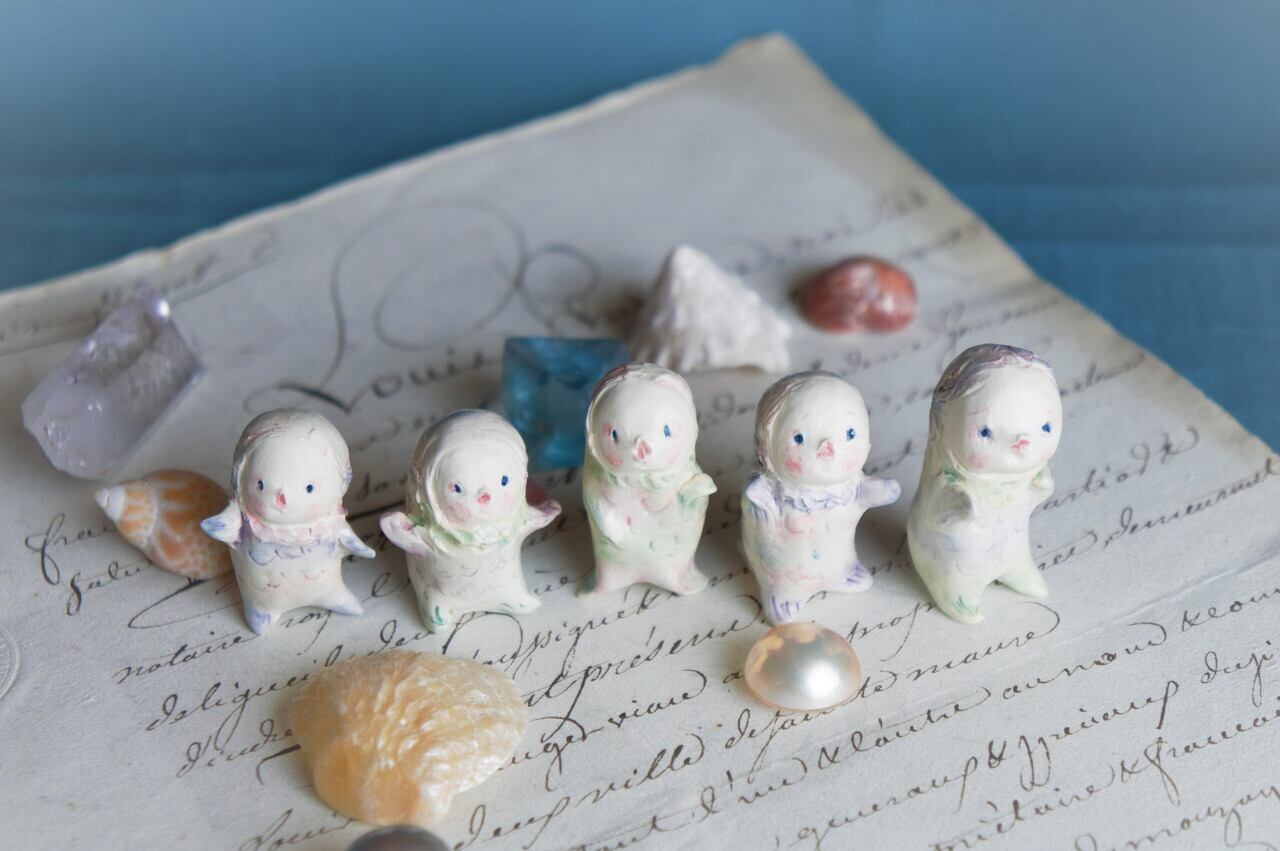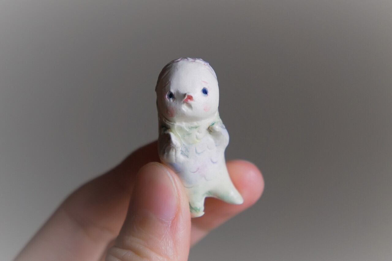 G この子はあかちゃんアマビエのなかでは大き目の子。年齢は上で、ちょっと臆病なようです。