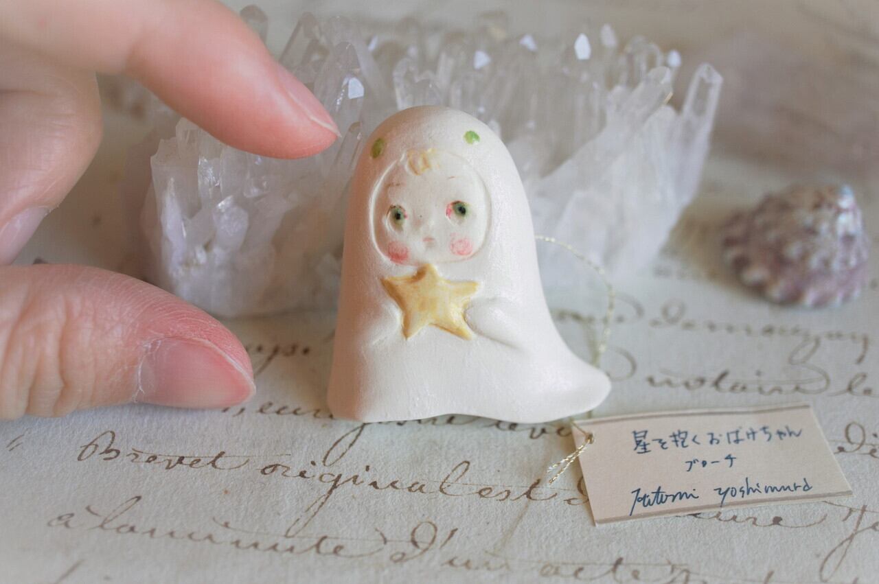 星を抱くおばけちゃんブローチ