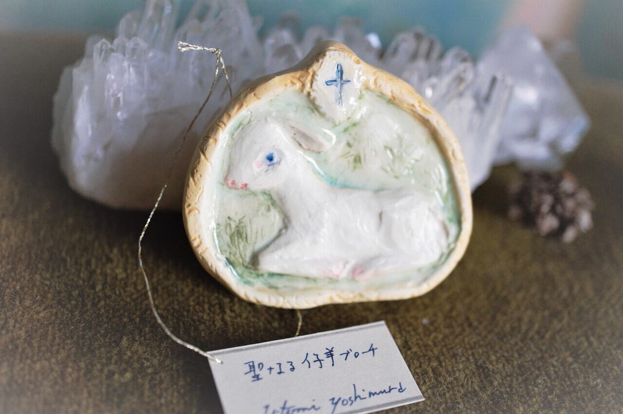草原に静かに座る仔羊をモチーフにしたブローチです。