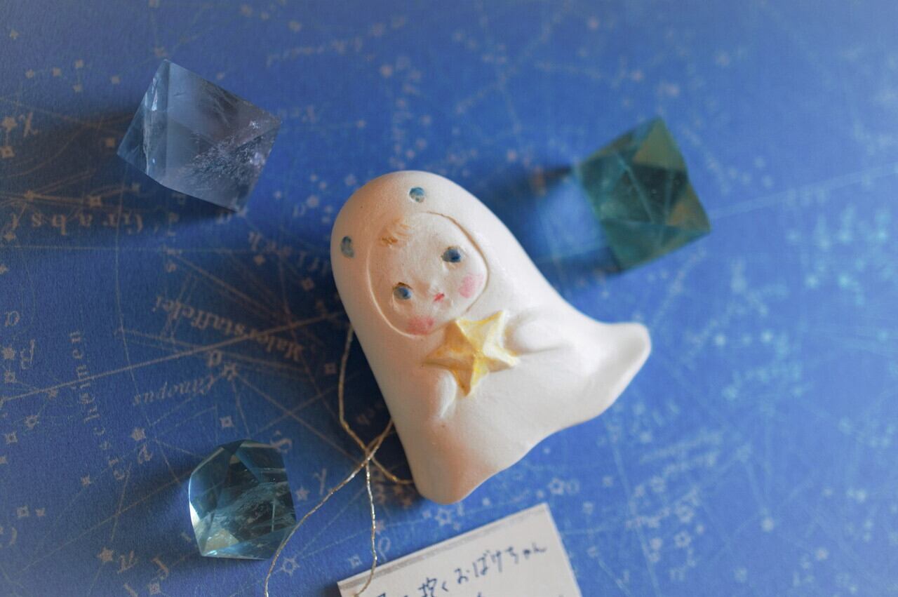 星を抱くおばけちゃんブローチ | Hitomi Yoshimura works