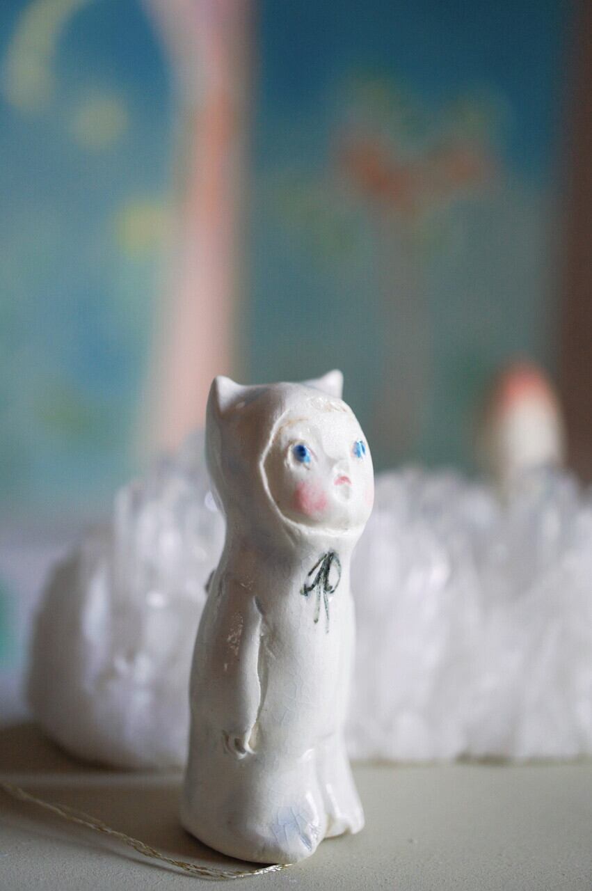 青い目が釉薬できらきらしています。