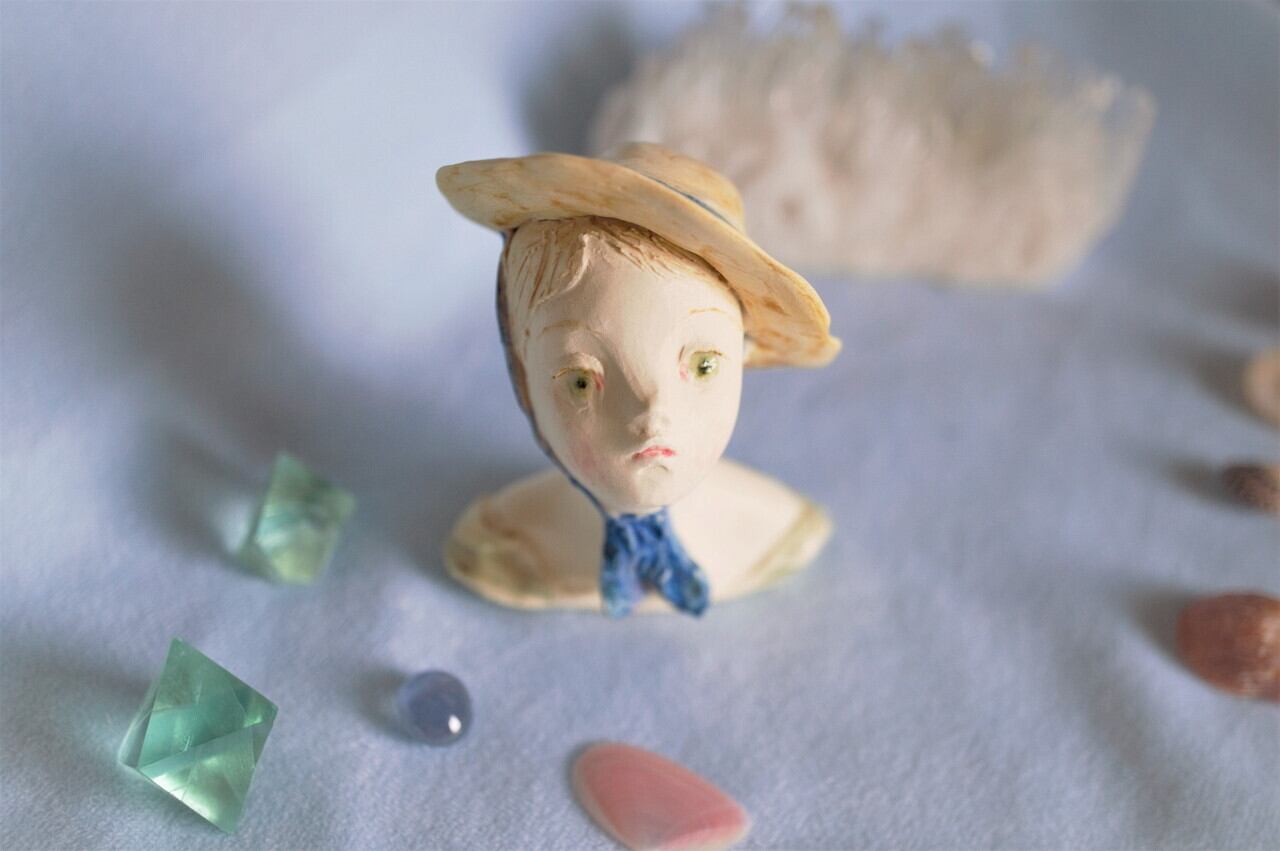 リボンのついた麦わら帽子をかぶった女性