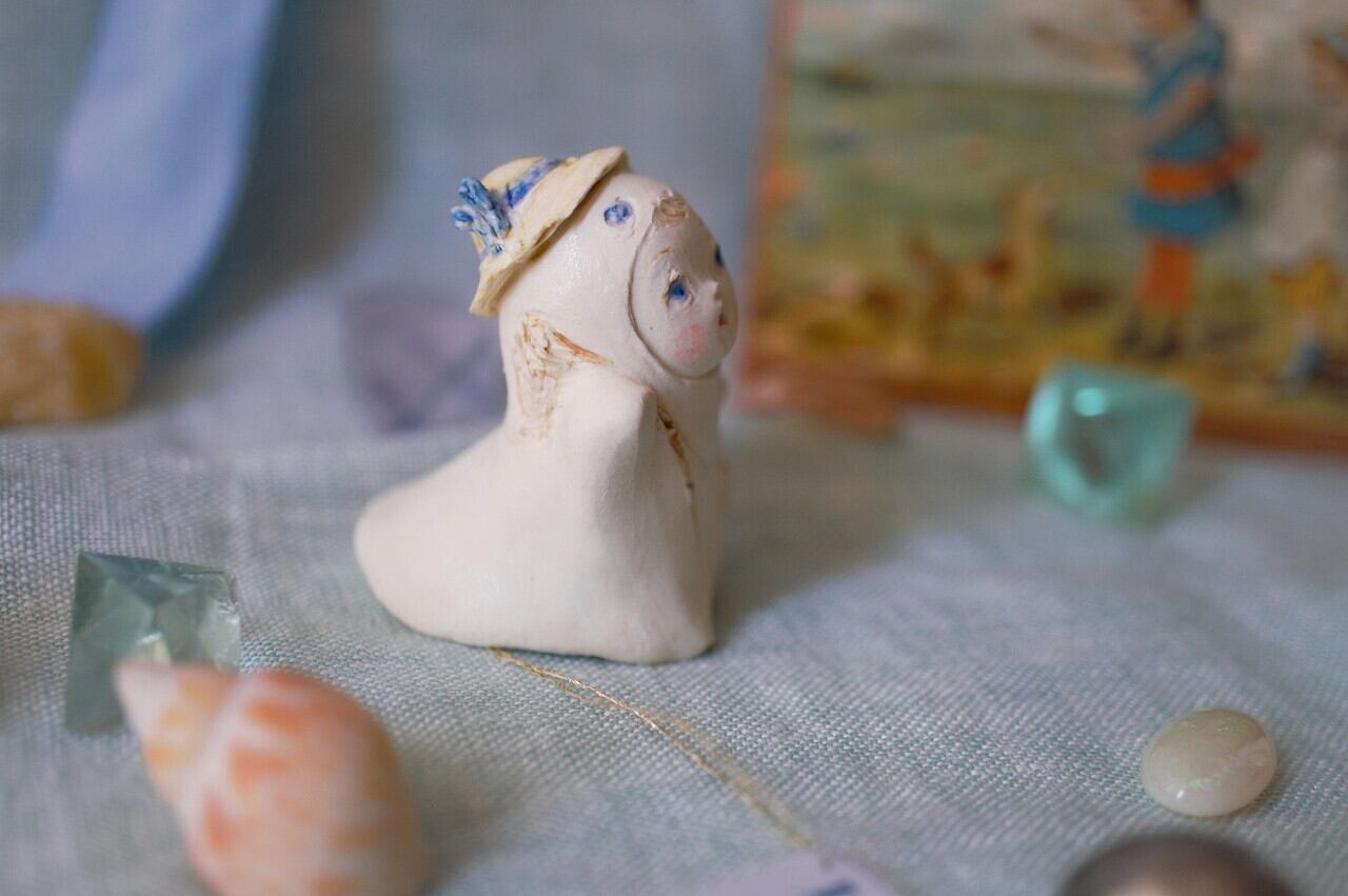 虫取り網と、虫かごを持って虫取りに行くちびおばけちゃん およそ3.7㎝