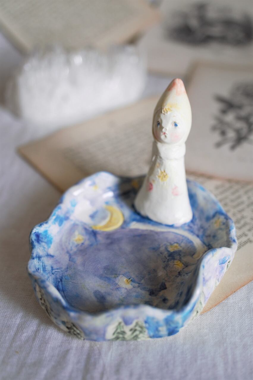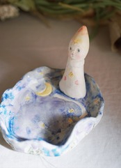 ろうそくぼうやに小さなトレイを付けて一緒に造形しました。