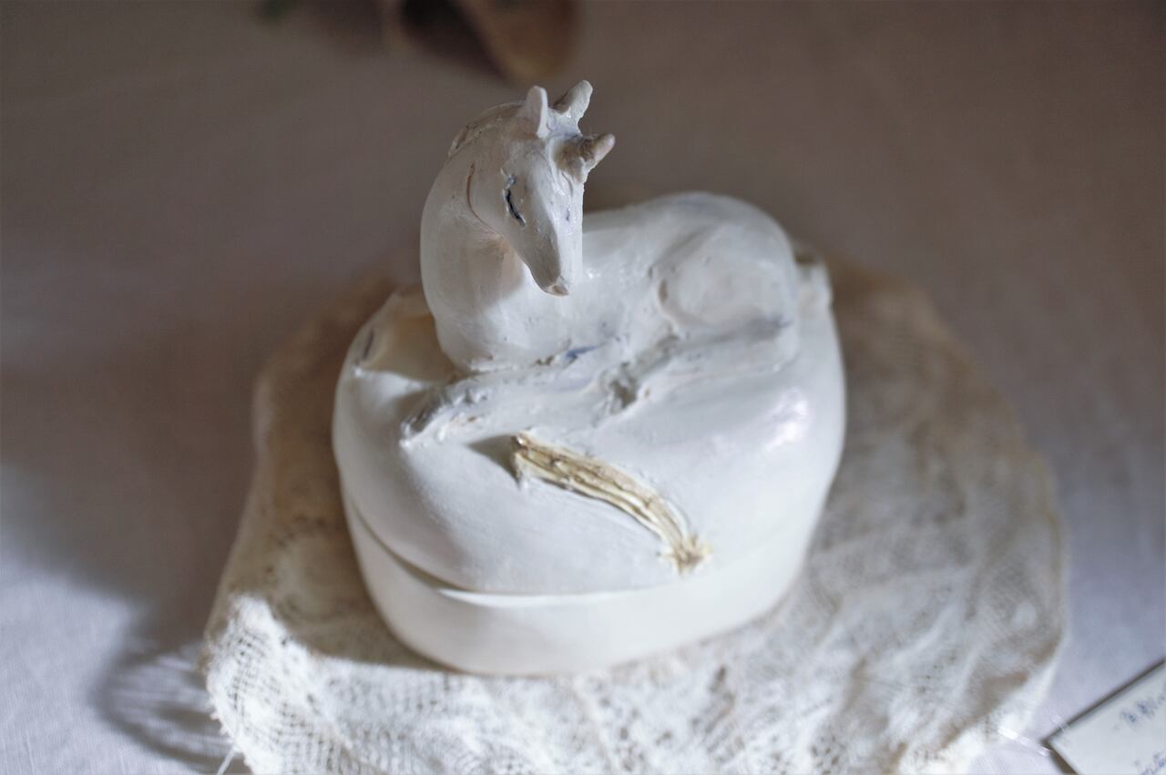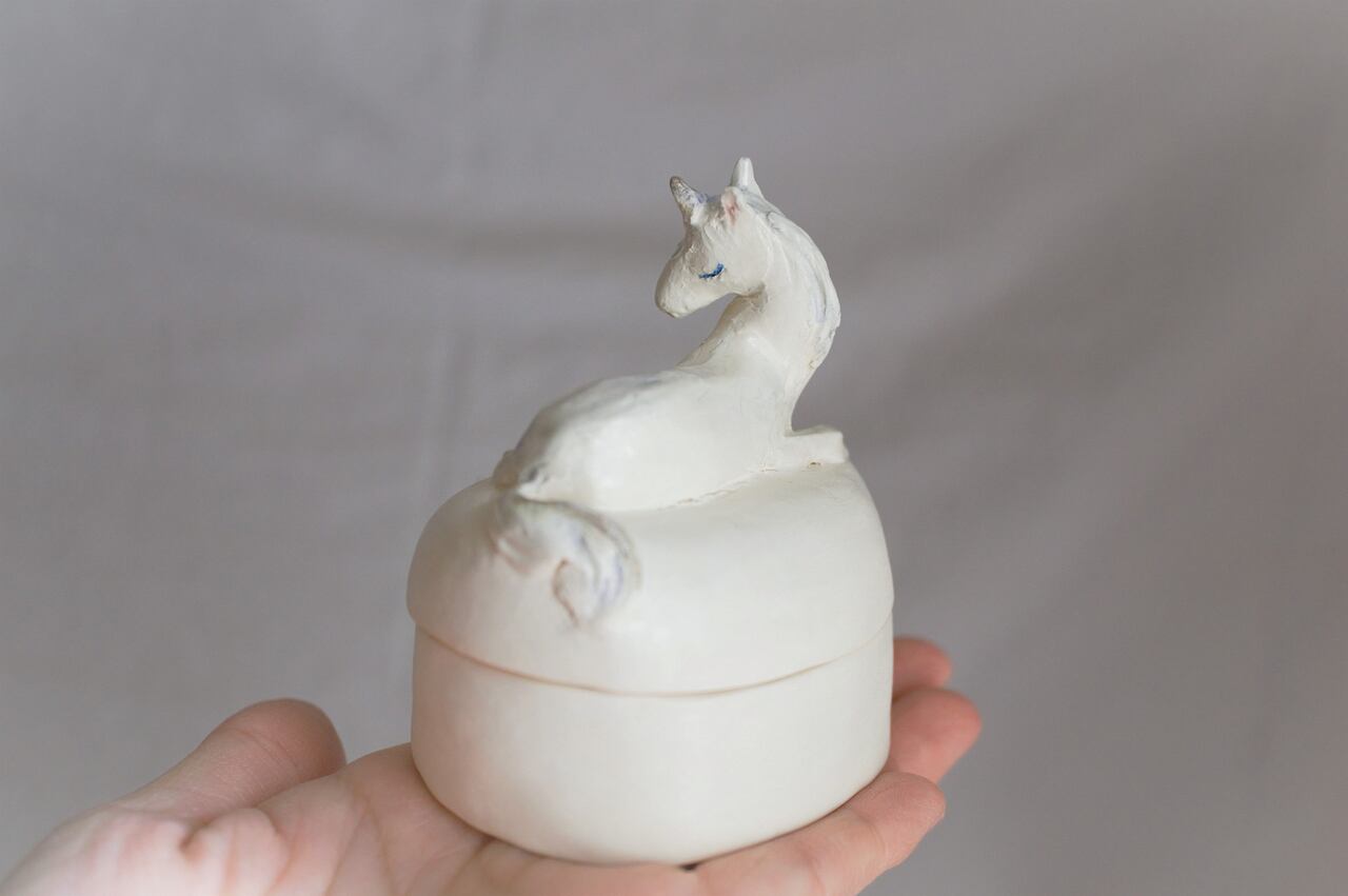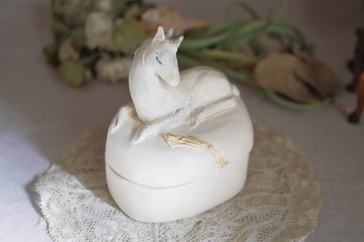 手のひらに載せてちょうどいいくらいのサイズの、一角獣の陶箱