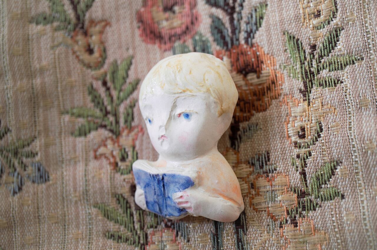 頬やひじ、ゆびさきはやわらかなピンクに色づけています。