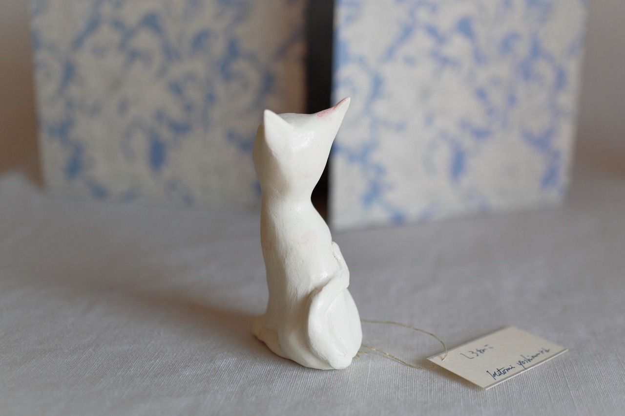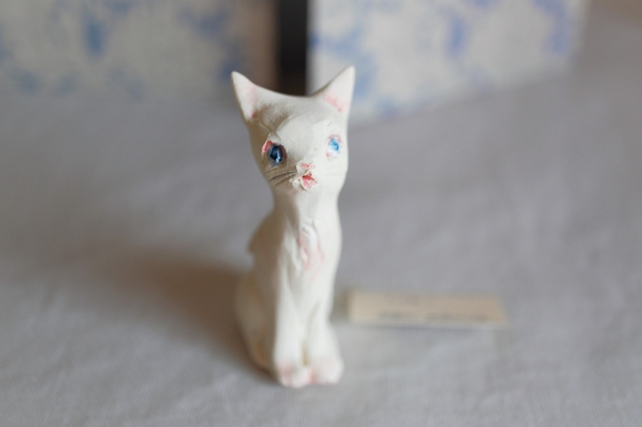 サイズ 高さ約6㎝ じいっと上を向いて、にゃーんと鳴いているような様子のねこです。 ブルーの目 まだ幼い感じです。