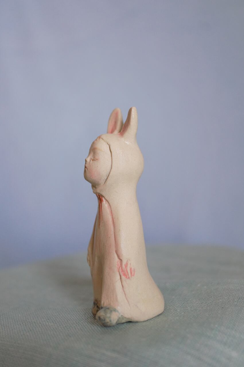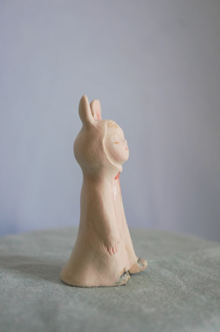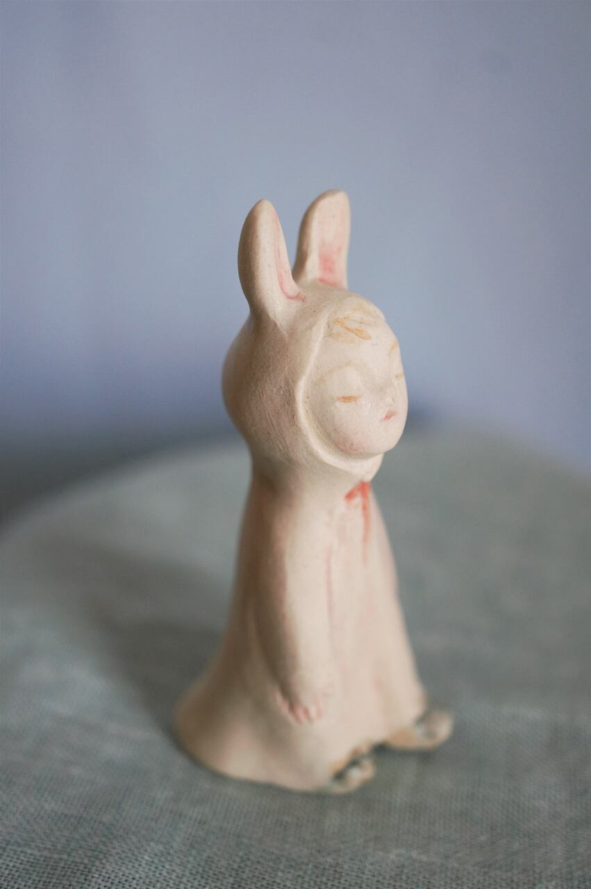 何か空想しながらお散歩しているようなうさぎ耳マントの子