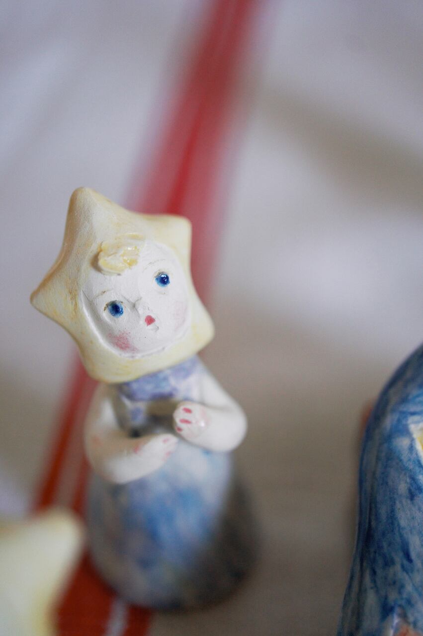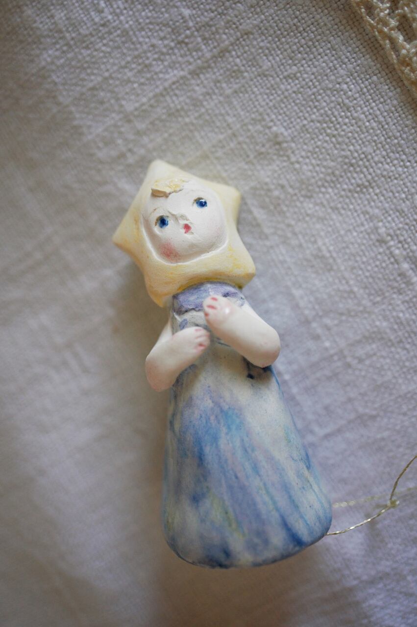 高さ約6㎝ 濃いブルーの瞳 服の色すみれ色~ブルー、淡くまじりあって綺麗です。