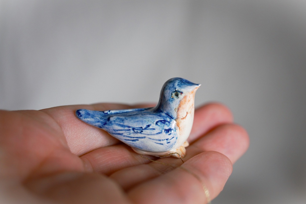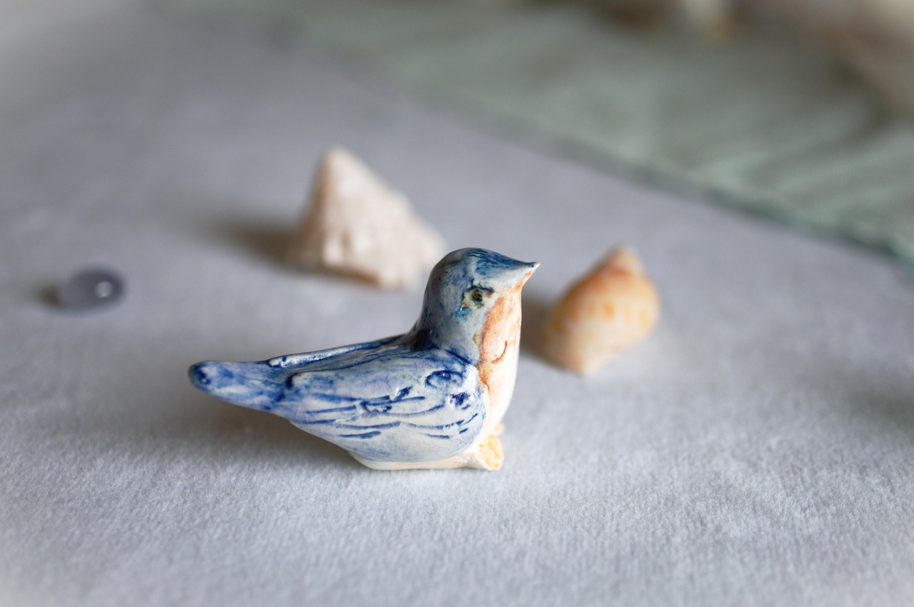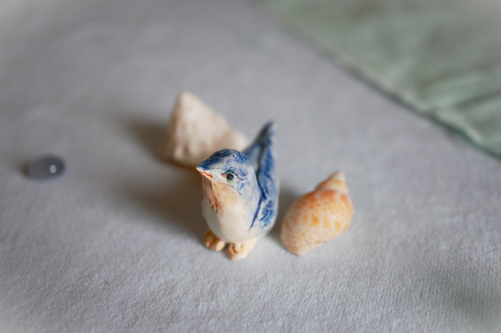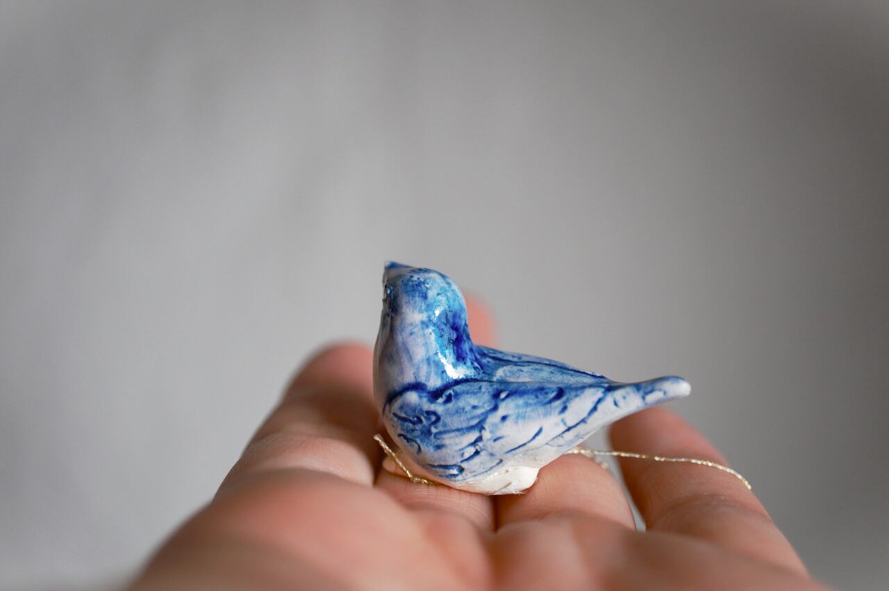 size 約3㎝ 小さなサイズですがきりっとした表情の 青い鳥です。 ちょこん、としてかわいいです。