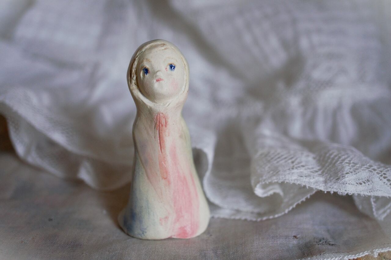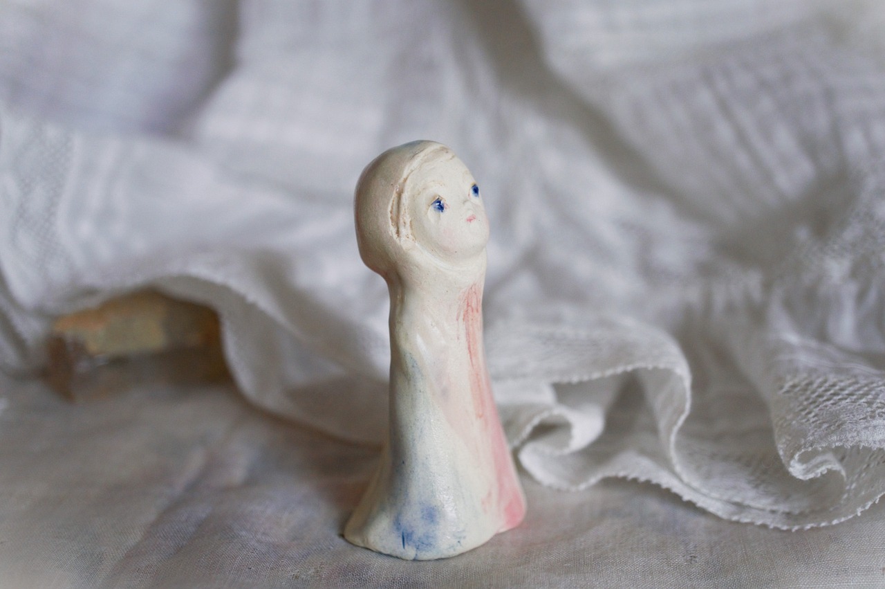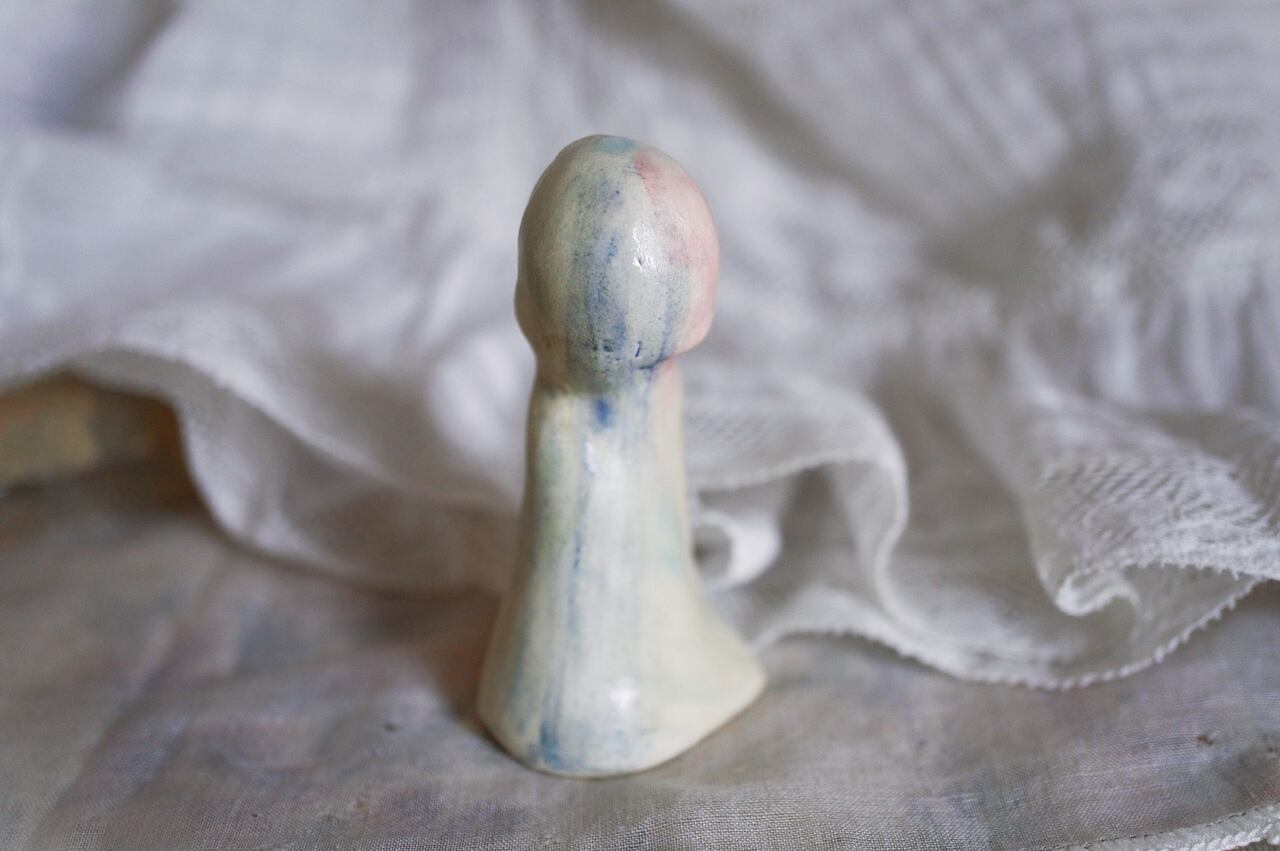 size 高さ約6.5㎝ 柔らかな色彩のローブに身を包んで、 静かに歩んでいく 小さな子